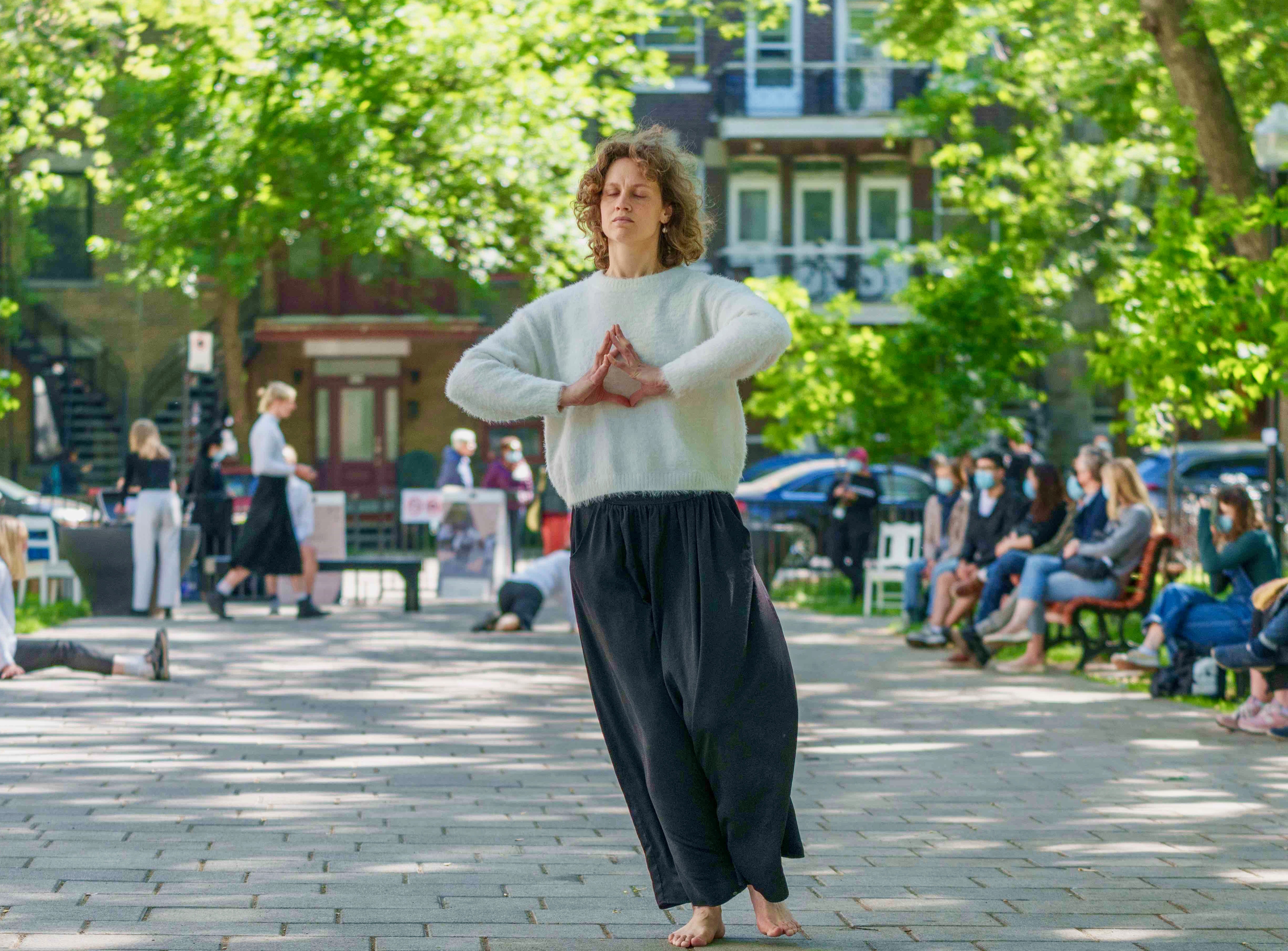 BIOGRAPHIE Après des études en arts plastiques et en danse à Genève, j’ai immigré en 2006 au Québec et y ai suivi un baccalauréat et maîtrise en danse contemporaine à l’UQAM (2006-2012). Entre 2009 et 2016, j’ai collaboré comme interprète avec plusieurs chorégraphes qui m’ont permis de raffiner une exploration de proximité et de co-présence avec les spectateur-rice-s pour y découvrir un art fondamentalement humaniste. Mes cinq créations sur le thème de l’Origine, le polyptique ORIRI-ORIR-ORI-OR-O, ont été présentées à Tangente, de 2012 à 2022. À la suite de cette série est née O2, une œuvre pour une grande communauté de personnes de tous âges et expériences, qui s’est déroulée au FTA en 2021. Au fil du temps, je me suis aussi spécialisée dans la guidance de processus de création avec différentes communautés marginalisées (personnes immigrantes, personnes ayant été victimes d’actes criminels, personnes vivant avec de grandes vulnérabilités psychiques, personnes vivant avec un handicap perceptible ou imperceptible), en collaboration avec d’autres organismes (Ville de Montréal – arrondissement Ville-Marie, Corpuscule Danse, Danse-Cité, Circuit-Est Centre Chorégraphique, Agora de la danse, Berceurs du temps, Mouvement de Paix). Plusieurs projets se sont aussi déroulés avec des groupes multigénérationnels de personnes amoureuses du mouvement, dans des parcs du quartier de Ville-Marie. Depuis 2016, je dirige l’Espace Oriri, petit studio à Montréal/Tiothià:ke/Mooniyang où se déroulent des ateliers créatifs intergénérationnels de peinture et danse intuitives, et autre propositions où l’art se met au service du lien, du soin et de l’ouverture à soi, à l’autre et à plus grand que soi. DÉMARCHE Je m'intéresse à la célébration de la vie. Que ce soit lors d’ateliers, de stages, de créations solo ou participatives, le but de chaque rencontre est de permettre la présence à soi, à l'autre et au sens que nous donnons à l’existence. Mes œuvres sont multidisciplinaires et participatives, souvent organisées comme des maisons, des espaces-temps dans lesquels les spectateur-ice-s sont invités à se déposer et faire l’expérience de la durée, du temps kairos... dans le but de favoriser l’être-ensemble et l’introspection. Depuis le projet O qui a réuni en 2022 36 bougeur-euse-s et 6 musicien-ne-s dans une danse circulaire de 36h, inspirée par le processus artisanal de la laine brute à la création d’un fil, ma démarche s’oriente de plus en plus radicalement vers la création d’espaces de recueillement où l’art et l’artisanat se mettent au service de l’intériorité et du lien, de l’écoute et du soin, de la réceptivité et de l’adelphité.
